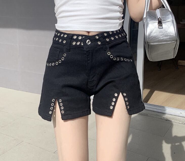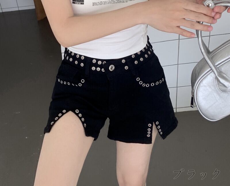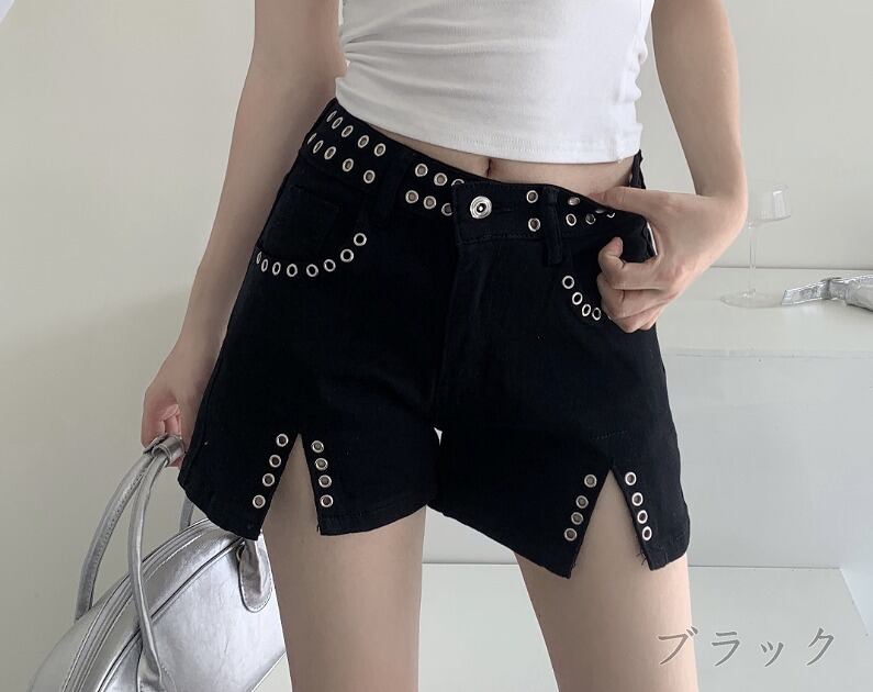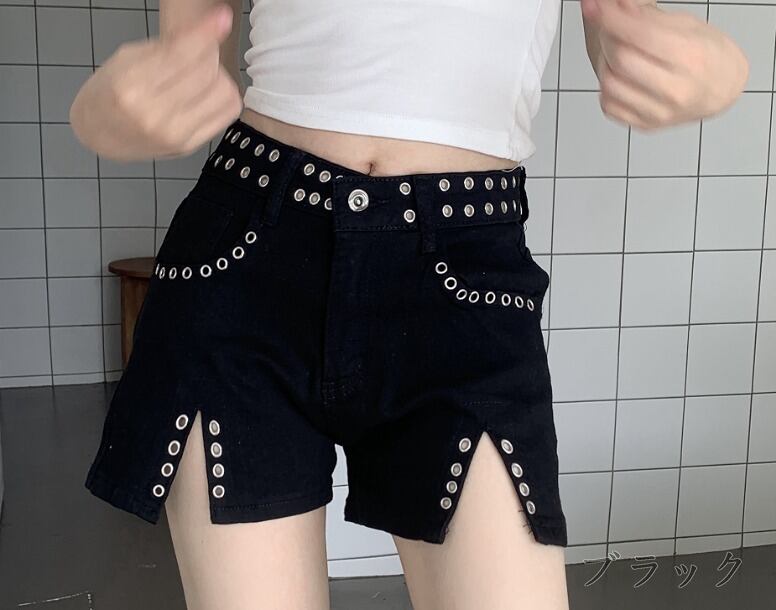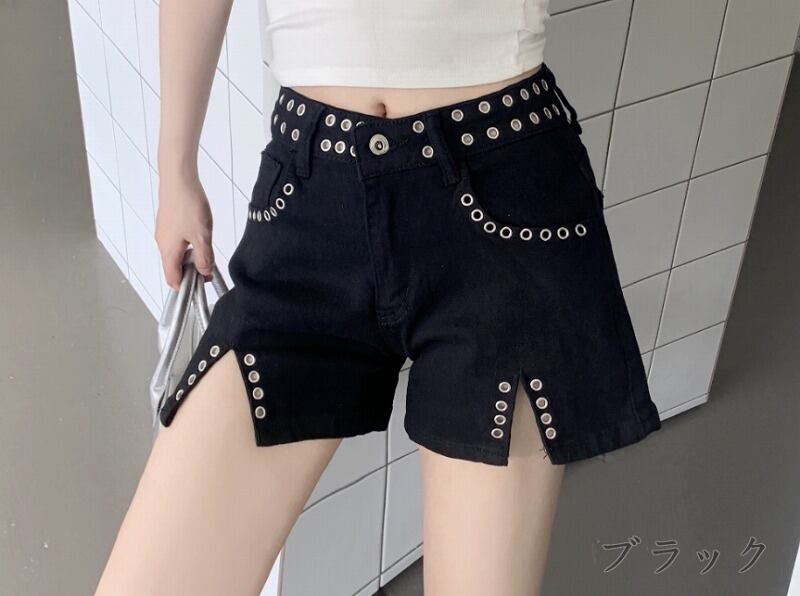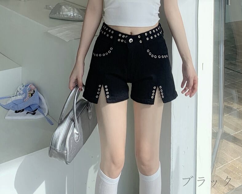 デニムショートパンツ ショーパン ジーパン 切り替え スリム 着痩せ デニム シンプル