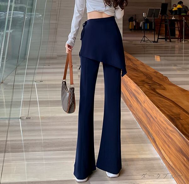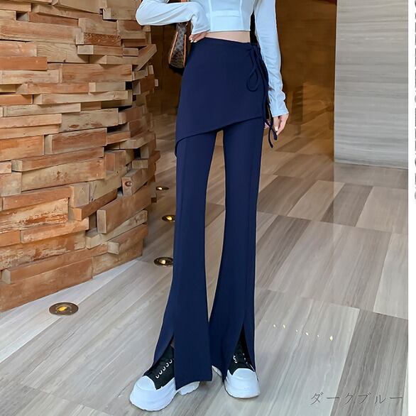 全2色 パンツ 切り替え スリム 着痩せ スリット シンプル