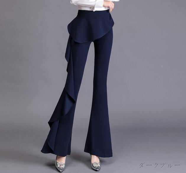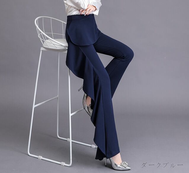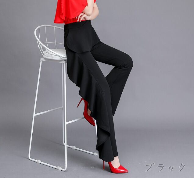 全2色 パンツ フリル 切り替え スリム 着痩せ sweet系