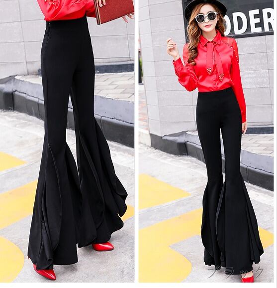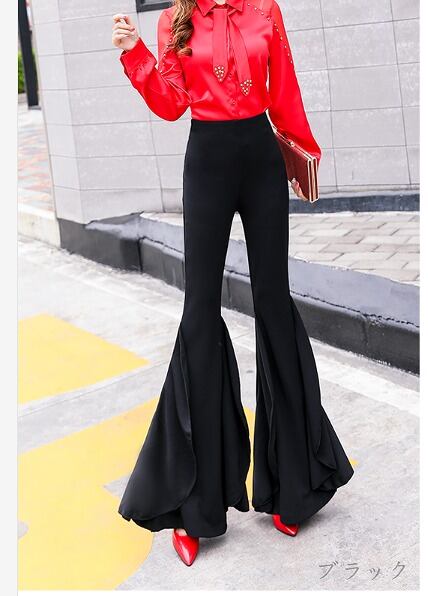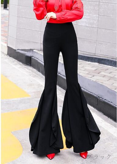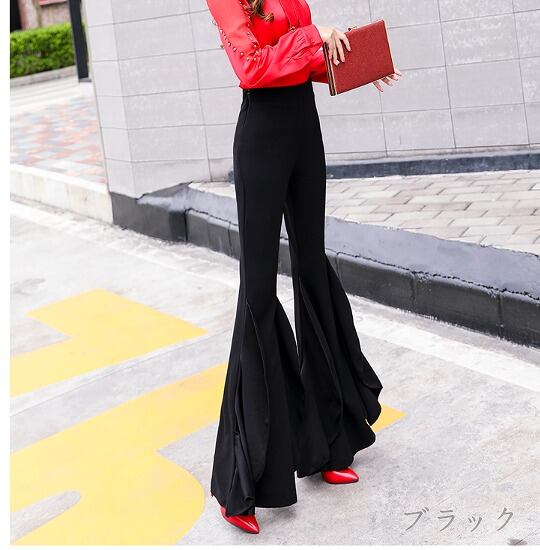 パンツ フリル 切り替え スリム 着痩せ カジュアル