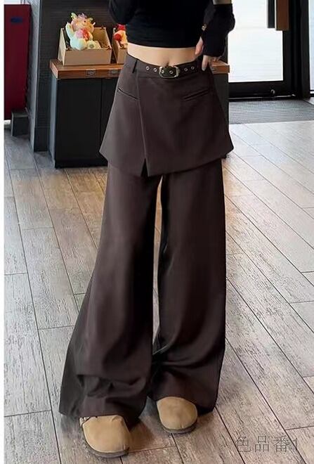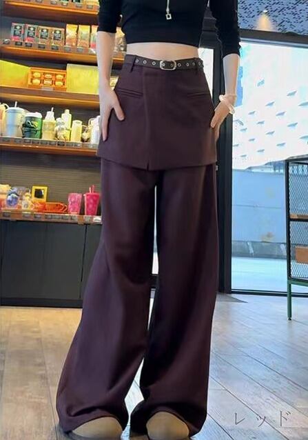 全4色 パンツ 切り替え 体型カバー 着痩せ カジュアル