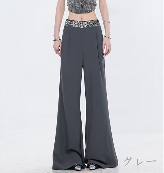 全2色 パンツ ハイウエスト 切り替え 体型カバー 着痩せ シンプル