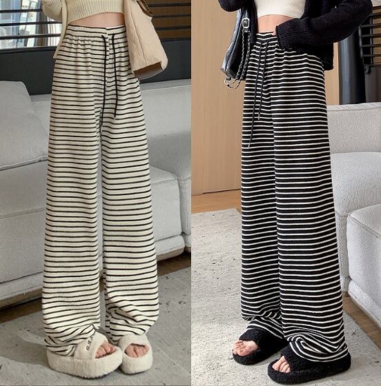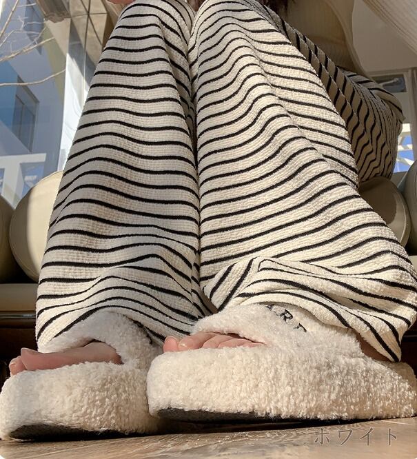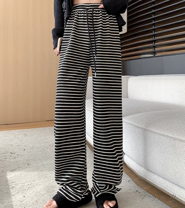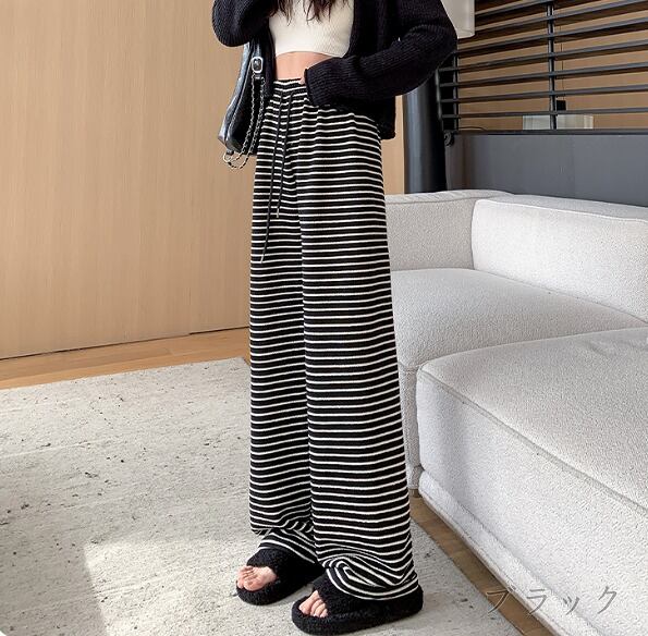全2色 パンツ 切り替え バイカラー 体型カバー 着痩せ ボーダー柄 カジュアル