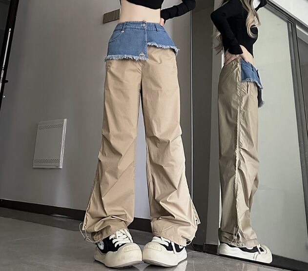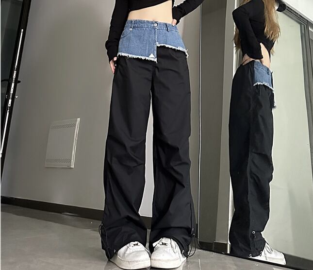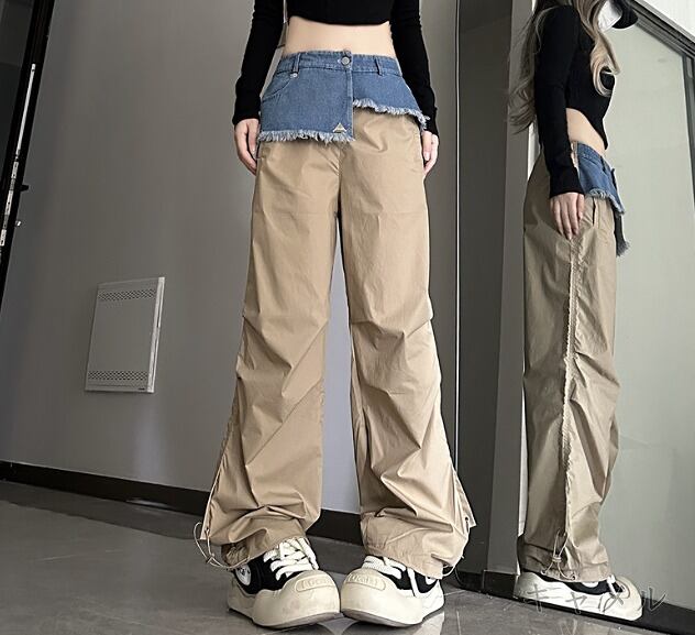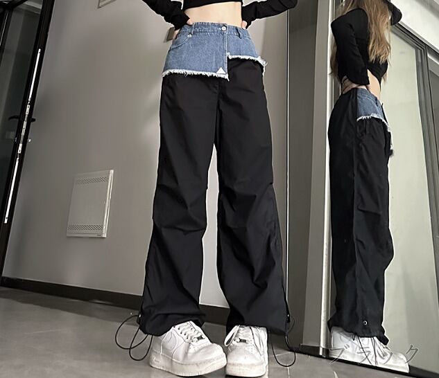 全2色 パンツ 切り替え バイカラー 体型カバー 着痩せ シンプル