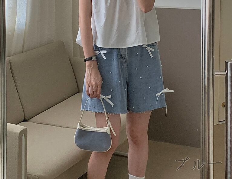 デニムショートパンツ ショーパン ジーパン 切り替え 体型カバー 着痩せ デニム シンプル