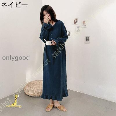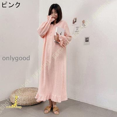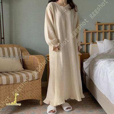 マタニティ 女性 秋 シンプル 厚手 ゆったり 暖かい 肌に優しい 通気性 ダブルガーゼ ルームウェア 春夏 長袖 ネグリジェ レディース ワンピース パジャマ