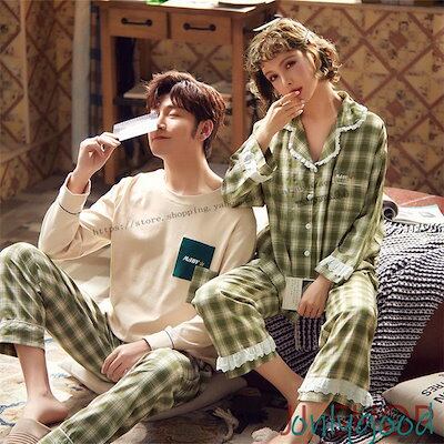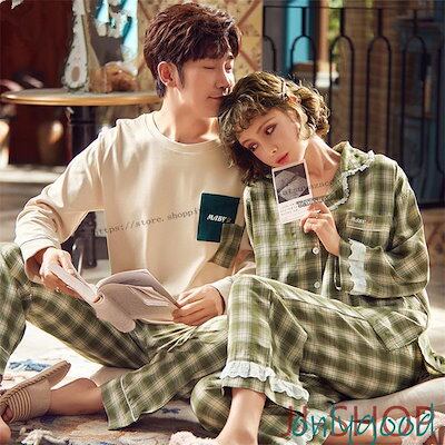 寝間着 部屋着 長ズボン ワンピース ペアルック お揃い 恋人 メンズ レディース ルームウェア 長袖 前開き ペアパジャマ 春秋冬 カップル パジャマ