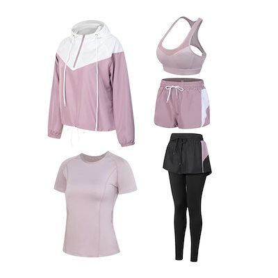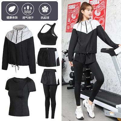 人気 2024 秋冬 【 5点セット 】ヨガウェア上下セット レディース 長袖 半袖ショーツ トップス タンクトップ 春夏 速乾 運動ズボン ホット ジャージ ヨガパンツ レギンス セットアップ