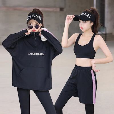 人気 2024 秋冬 【4点セット】春夏 ヨガウェア上下セット レディース 長袖 ショーツ トップス タンクトップ レギンス 速乾 運動ズボン ホット ジャージ ヨガパンツ セットアップ