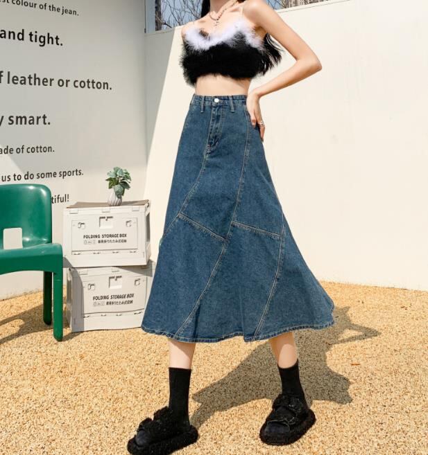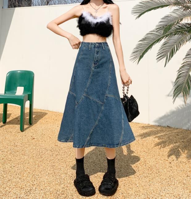 2023春夏新作 ボトムス 女 レディース ハイウエスト デニム ロングスカート 台型スカート