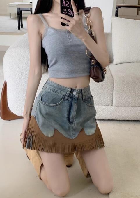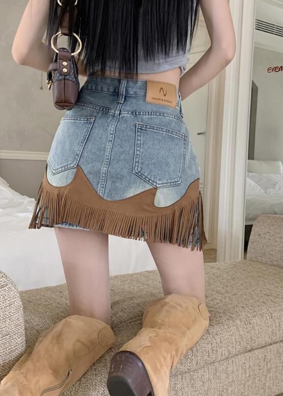 2023春夏新作 ボトムス 女 レディース ハイウエスト デニム ミニスカート 台型スカート S-XL