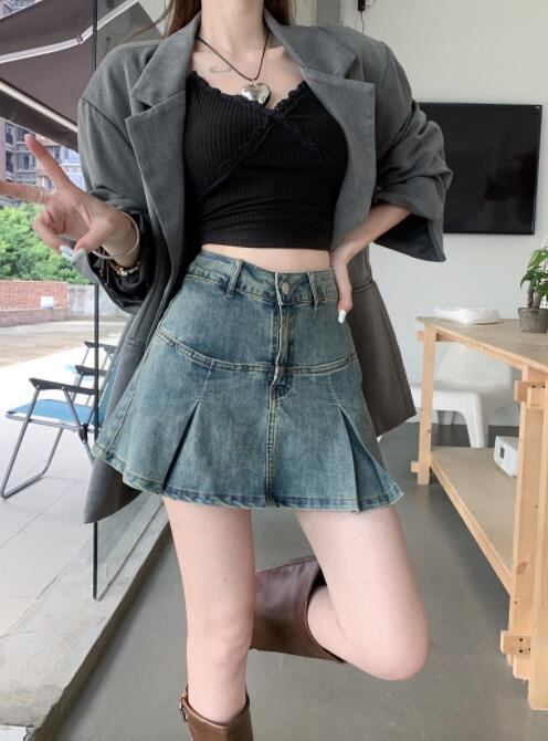 2023春夏新作 ボトムス 女 レディース ハイウエスト デニム ミニスカート プリーツスカート S-XL