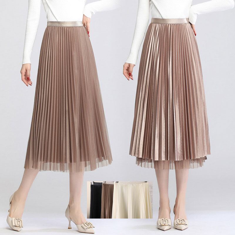 2024年春夏新作 スカート レディーススカート プリーツスカート ボトムス 着回し ハイウエスト aライン