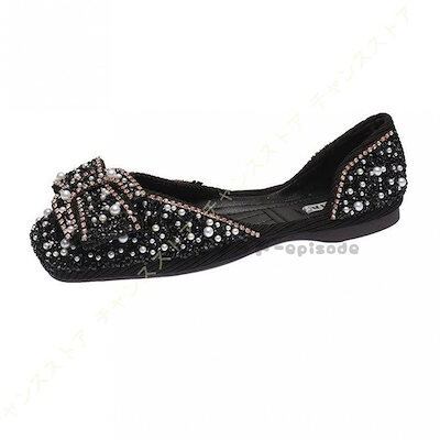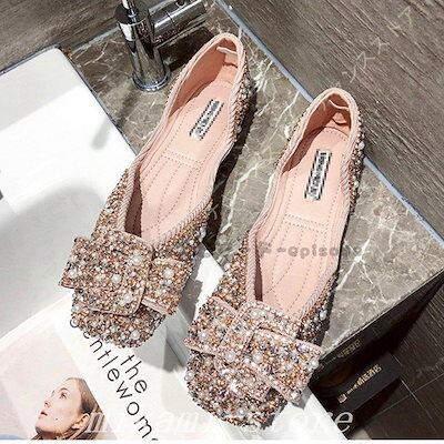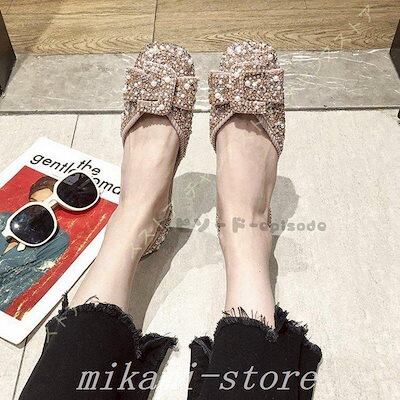 バレエシューズパンプス痛くないキラキラグリッターフラットシューズスリッポンローヒールスクエアトゥラメ蝶結びレディース大きいサイズ