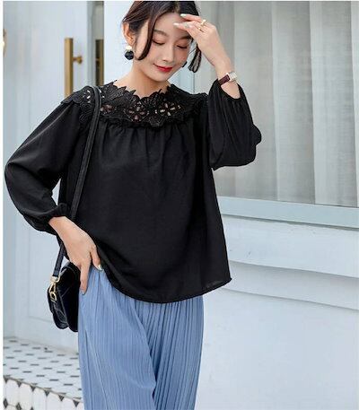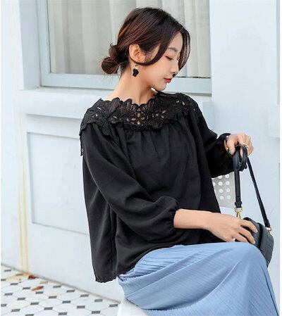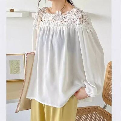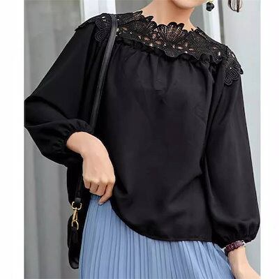ブラウス レディース シャツブラウス レース 秋 春 長袖 長袖ブラウス 無地ブラウス トップス 春秋 ジュアル ゆったり オフィス 通勤 日常 ディリー 重ね着 着回し 着痩せ 着心地 体型カバー