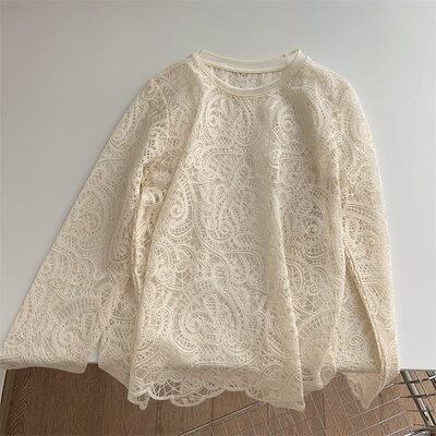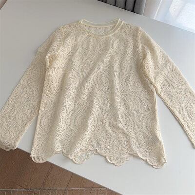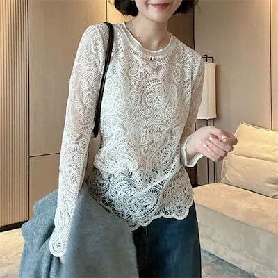 レース tシャツ レディース カットソー トップス ブラウス 長袖 レースシャツ 総レース 花柄 レースtシャツ スーツ インナー クルーネック 秋 春 夏 透け感 セクシー おしゃれ 着回し 重ね着