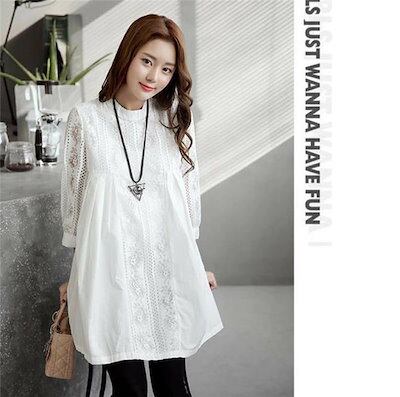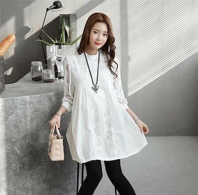 チュニック ワンピース ロングシャツ シャツ 白シャツ ブラウス レディース チュニックブラウス 春夏秋 シャツワンピ レース 切り替え 大人 可愛い 体型カバー 着痩せ おしゃれ 白 ホワイト 送