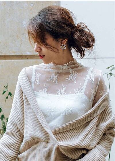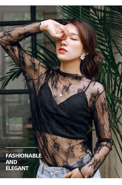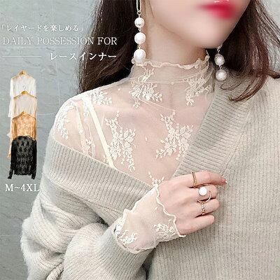 トップス シアー シースルー レディース レース 花柄 レーストップス カットソー 刺? 大人 レイヤードトップス ブラウス ハイネック レースインナー 長袖 透け 重ね着 きれいめ ハイネック ブラ