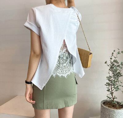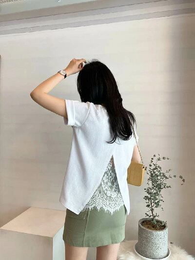 カットソー Tシャツ プルオーバー 半袖 後ろレース 切り替え バックジャ トップス tシャツ レディース 春 夏 秋 レース切り替え カットソー ゆったり カジュアル おしゃれ シンプル ゆるっと