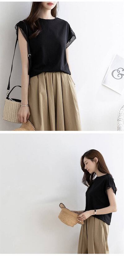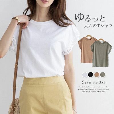 Tシャツ プルオーバー 半袖 夏 秋 春 トップス tシャツ レディース レース切り替え カットソー 半袖 ゆったり ラウンド tシャツ カジュアル おしゃれ シンプル ゆるっと きれいめ 着回し