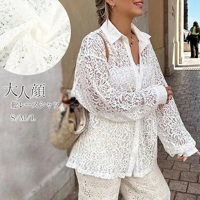 シャツ ブラウス レディース 春 夏 長袖 透かし彫り カットワーク レース フェミニン 柔らかい 薄手 トップス 長袖 羽織り デザイン シャツ シンプル カジュアル 女性らしい 大人 おしゃれ き