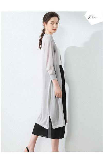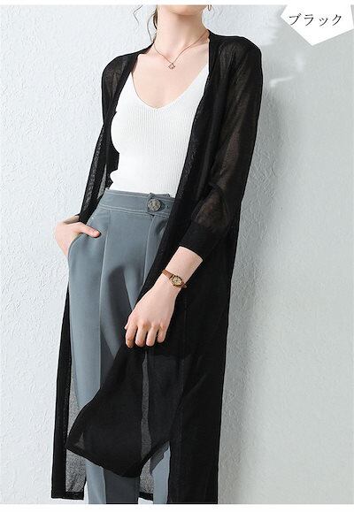 ロングカーディガン カーディガン ロング 薄手 レース トップス 春 夏 フレンチスリーブ 羽織もの レディース 羽織り ロング丈 前開き ロングカーデ 総レース 無地 紫外線対策 冷房対応 透け 透