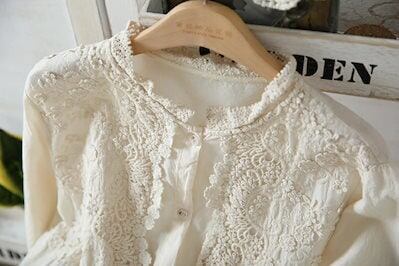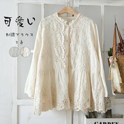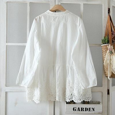 チュニック 長袖 ブラウス トップス 刺繍 シャツ レディース 春 長袖シャツ 綿 レース コットン 刺繍ブラウス ロングシャツ シャツブラウス 前開き ボタン留め 夏 通気 可愛い きれいめ