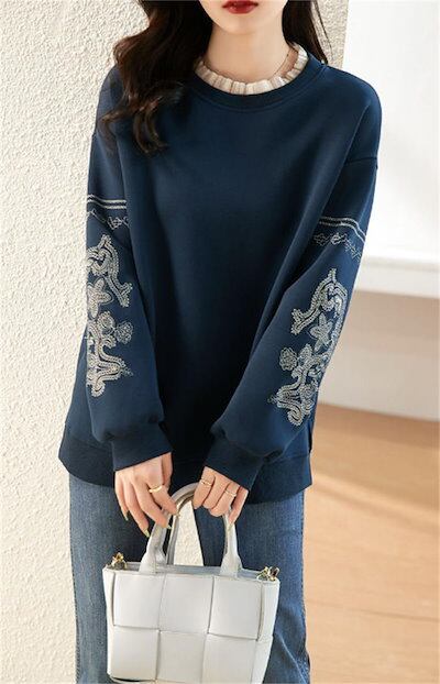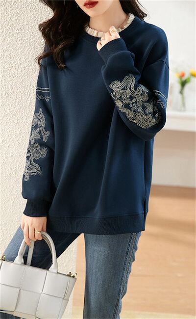 綿 フリルネック スウェット レディース おしゃれ トレーナー 秋 春 ゆったり プルオーバー 春秋 トップス パーカー 長袖 刺繍 クルーネック カジュアル トップス 秋冬 シンプル フリル レース