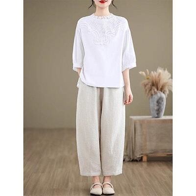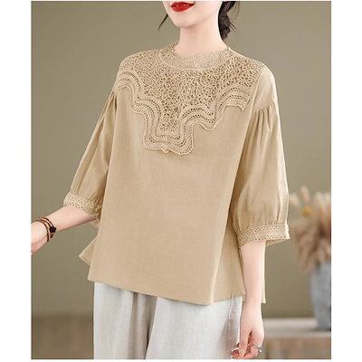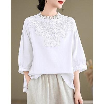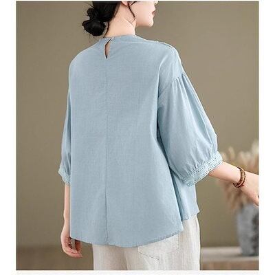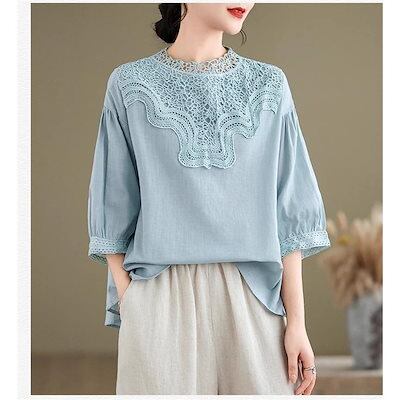 ブラウス レディース トップス 春夏 シャツ 半袖 ハイネック レース 大きいサイズ 今年らしく シンプルで上品 体型カバー ゆったり タックスリーブ 無地