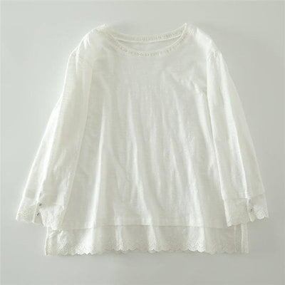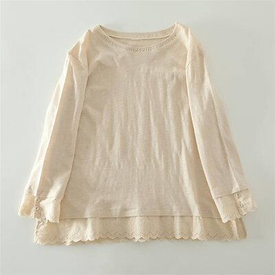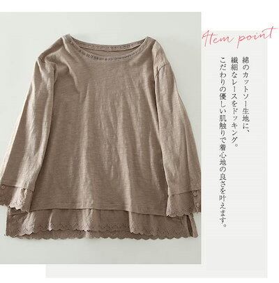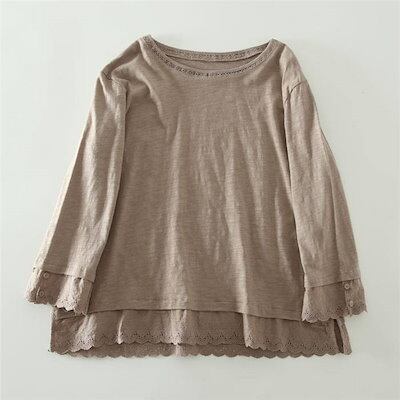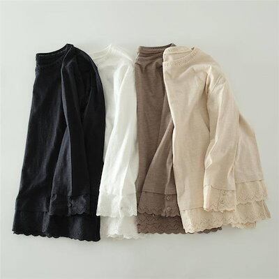 tシャツ レディース おしゃれ 裾レース レイヤード カットソー 長袖 レース インナー 無地 重ね着 切り替え Tシャツ シンプル 着回し 定番 トップス プルオーバー クルーネック カジュアル 通