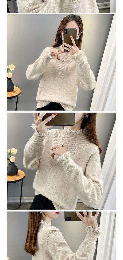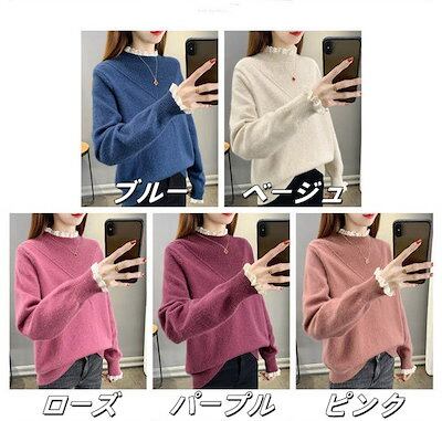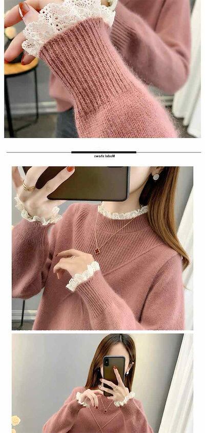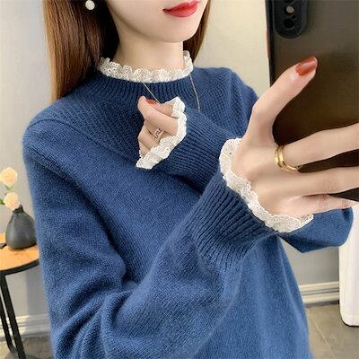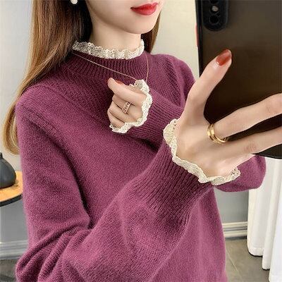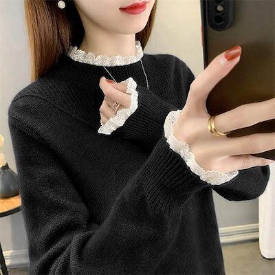 異素材 ニット セーター レディース 長袖 トップス リブ インナー レース 切り替え シャツブラウス 秋冬 ニット 秋 春 重ね着 ブラウス 無地 長袖ブラウス 無地ブラウス トップス 春秋 ジュア
