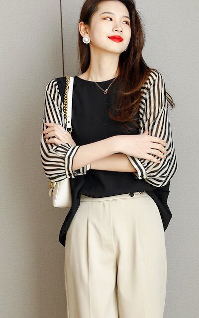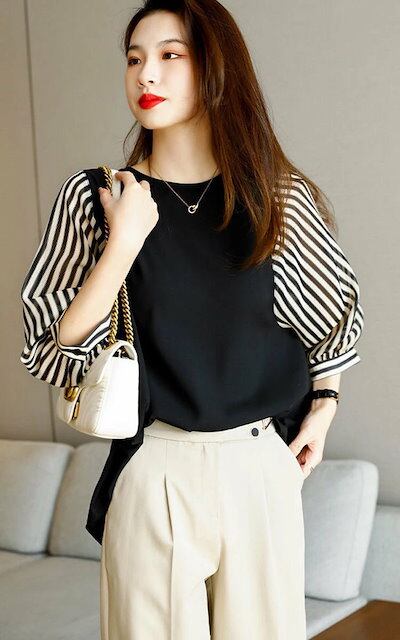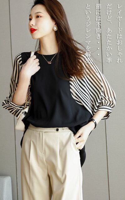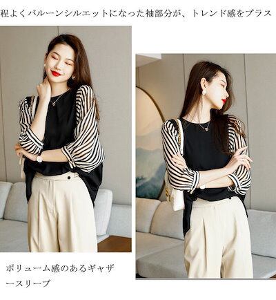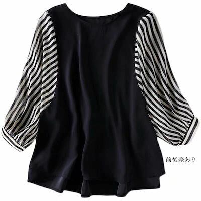tシャツ ドッキング 五分袖 レディース プルオーバー シャツブラウス 切り替え 大きいサイズ ブラウス ドッキングブラウス ボリューム袖 バルーン袖 重ね着 夏 トップス ベスト フリル 半袖tシャ