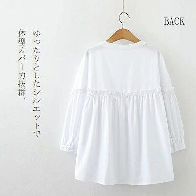 シャツ 7分袖 チュニック 白シャツ レディース 夏 七分袖 シャツブラウス チュニック 薄手 ホワイトシャツ 秋 トップス 羽織り フリル ギャザー ゆったり ドルマンスリーブ 無地