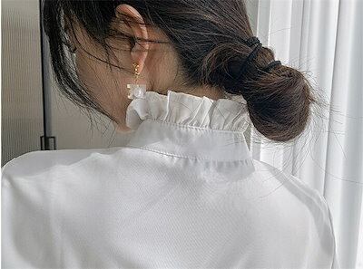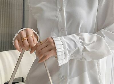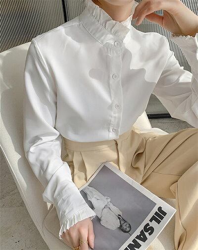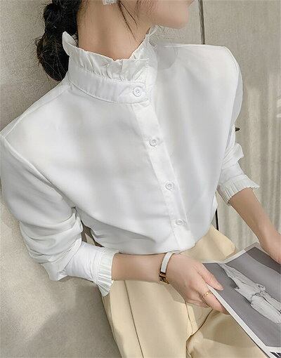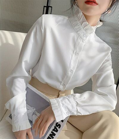 シャツ ブラウス 白シャツ レディース 春秋 長袖 シャツブラウス 立ち襟 フリル襟 フリル 前開き チュニック レイヤード 重ね着 オフィス 仕事 エレガント 通勤OL ベーシック カジュアル お
