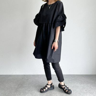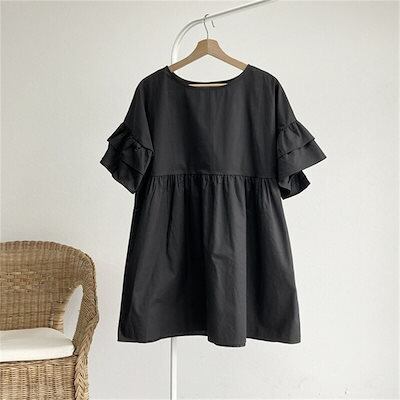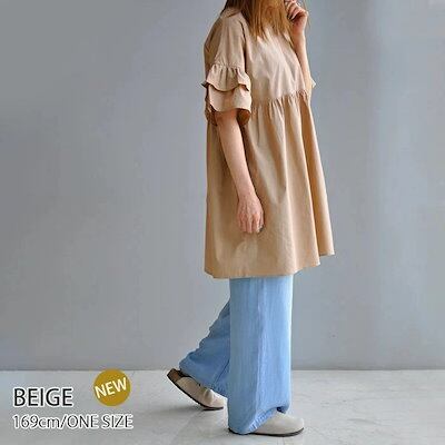 チュニック 半袖 レディース 夏 春 秋 フレア袖 フリル袖 大きいサイズ ゆったり Tシャツ ロンT ブラウス オシャレ カジュアル ウエストギャザー 着回し 体型
