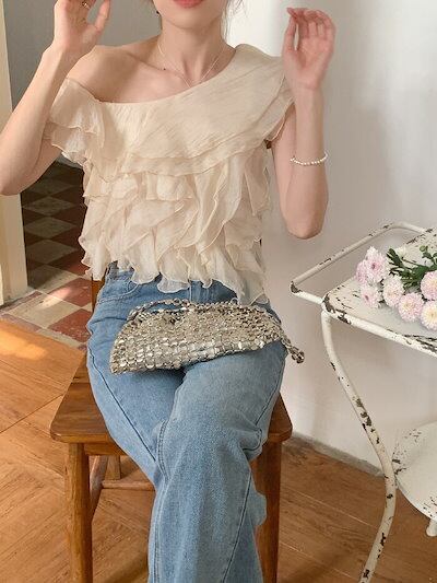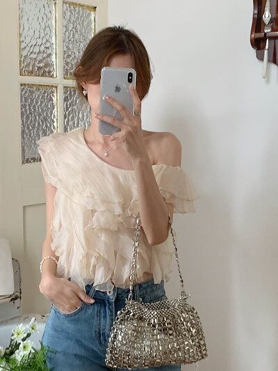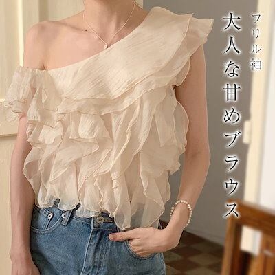 ブラウス オフショルダー レディース フリル袖 オープンショルダー ティアード トップス チュール トップス フェミニン 着回し シンプル おしゃれ 大人 カジュアル こなれ感 トレンド感 春 夏 秋