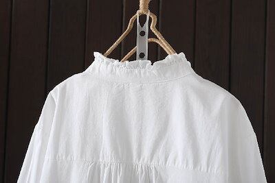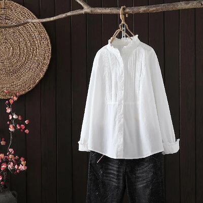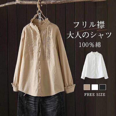 シャツ ブラウス レディース フリル襟 シャツ 綿 コットン ブラウス 長袖 トップス 羽織り カジュアル 無地 ブラウス 大きいサイズ 体型カバー ゆったり 通勤 春 秋 夏 シンプル 着回し 柔