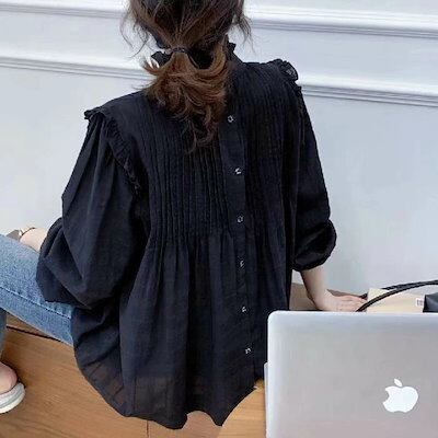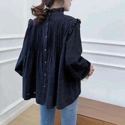シャツ レディース フリル襟 春 秋 無地 綿 前後2way トップス 長袖 白シャツ コットン フリル襟 ブラウス フェミニン 着回し シンプル おしゃれ 大人 カジュアル こなれ感 春 大人可愛い