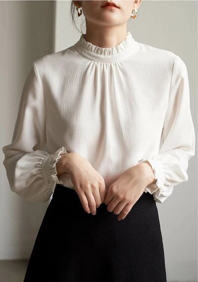 ブラウス フリル襟 レディース ブラウス 長袖 レディース Tシャツ ブラウス 無地 シャツ ブラウス ハイネック 七五三 ママ スーツインナー 入学式 卒業式 インナー 立ち襟 大人 お洒落 フォー