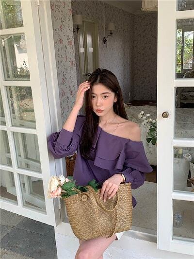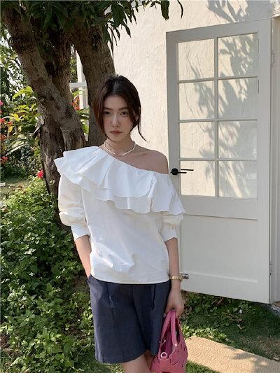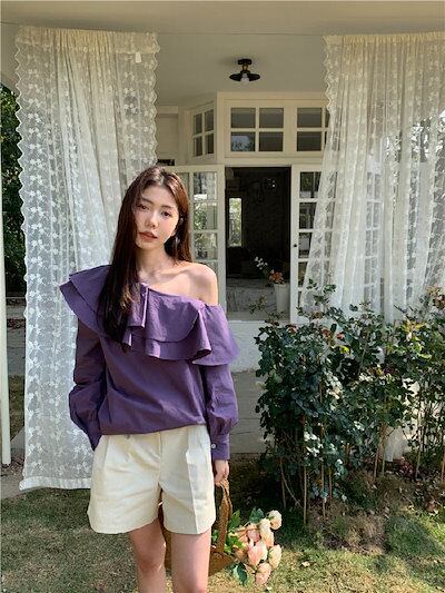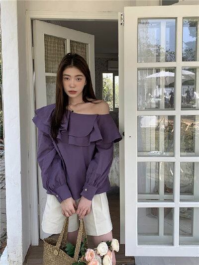 Tシャツ レディース 長袖 フリル袖 Tシャツ オフショルダー 無地 トップス 切り替え シャツ オフショルダー ブラウス フレア袖 春 秋 夏 きれいめ ブラウス ゆったり 可愛い お洒落 着回し抜