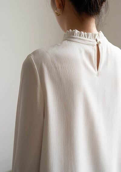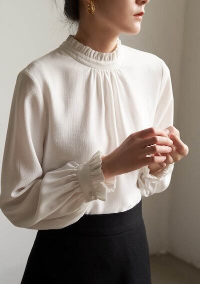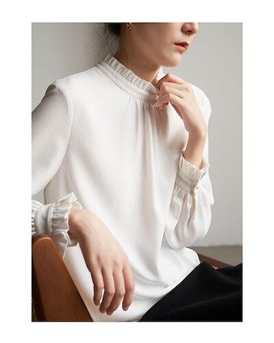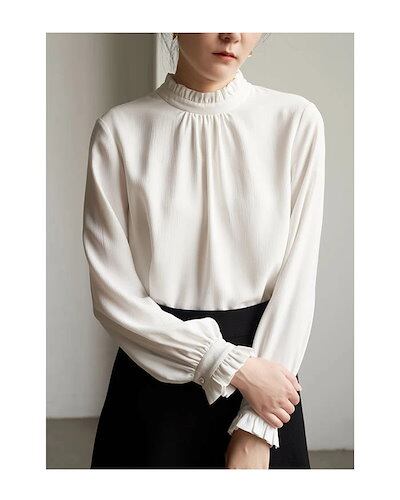 ブラウス レディース 長袖 襟フリル シャツブラウス スーツインナー 白シャツ トップス 袖フリル フォーマル 無地 ホワイト 白 オフィス ビジネス お洒落 通勤 ワイシャツ カジュアル OL おし