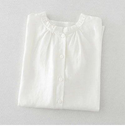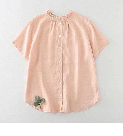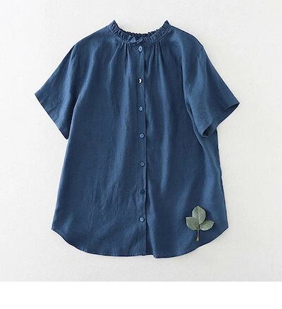 ブラウス レディース 夏 前後2way シャツ 衿フリル 半袖 シャツブラウス 綿麻風 無地 トップス 夏服 薄手 ゆったり カジュアル ナチュラル シンプル 大人 可愛い おしゃれ きれいめ 大きい