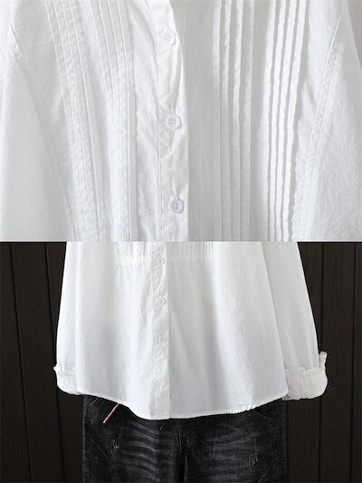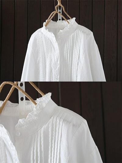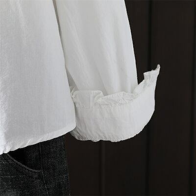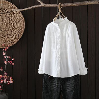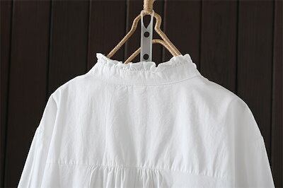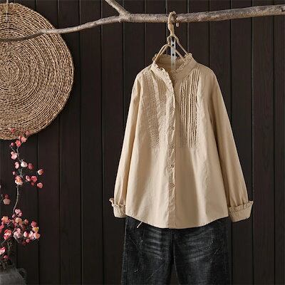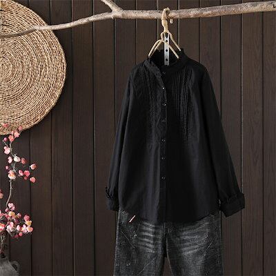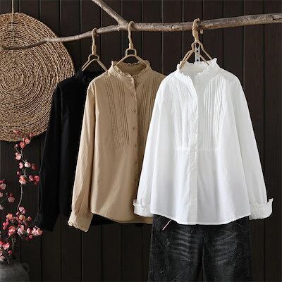 ブラウス フリル襟 シャツ レディース 長袖 コットン ブラウス 綿 シャツ フロントタック スタンダードカラー シャツ 大きいサイズ 前開き トップス ゆったり カジュアル キレイめ ナチ