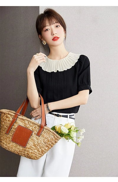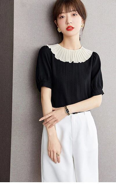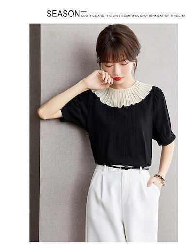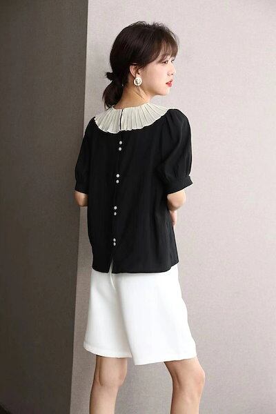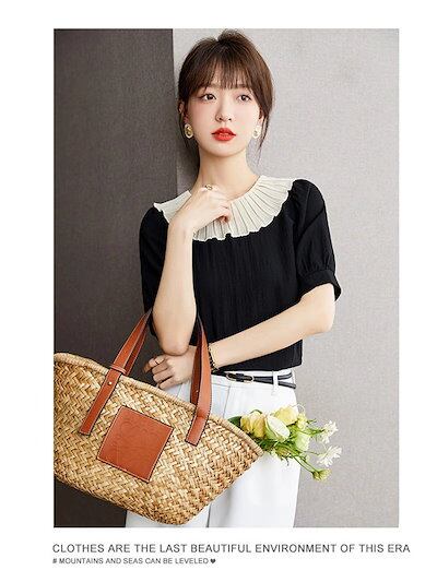オフェスブラウス シャツブラウス レディース 半袖 夏 フリルカラー tシャツ トップス 通勤 OL 大きいサイズ ゆったり オフェス カジュアル シンプル 大人 可愛い おしゃれ エレガント フェミニン