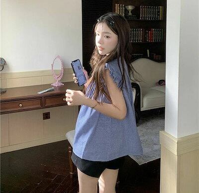 ブラウス 肩フリル レディース ノースリーブ シャツブラウス トップス 白シャツ 袖なし シャツ 前開き インナー ボタン タンクトップ お洒落 可愛い カジュアル 無地 チェック柄 シンプル ゆった