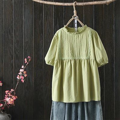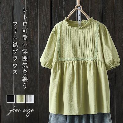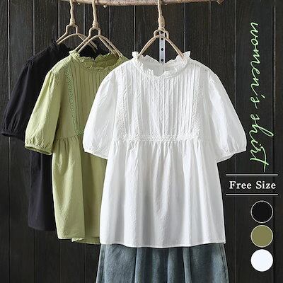 ブラウス フリル襟ブラウス 綿 レディース 半袖 プルオーバー チュニック トップス 夏 コットン ブラウス 大きいサイズ シンプル ナチュラル 爽やか 柔らか ゆったり 肌に優しい 大人 可愛い