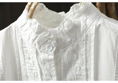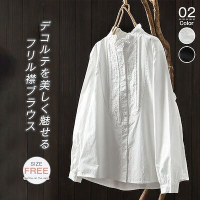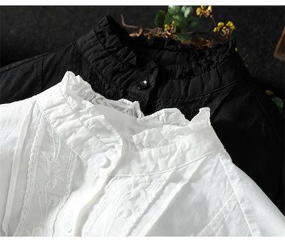 シャツ ブラウス レディース 長袖 トップス フリル襟ブラウス 綿混 レース ブラウス シャツ コットン スタンドカラー 通勤 ビジネス オフィスカジュアル 春 夏 秋 冬 大人可愛い キレイめ フォ