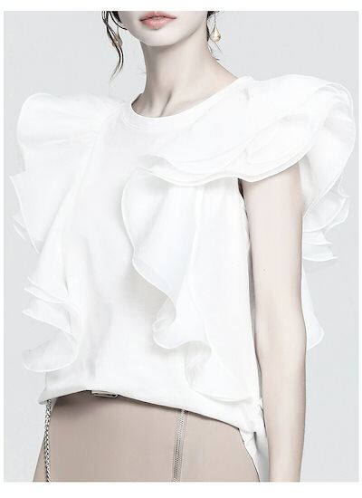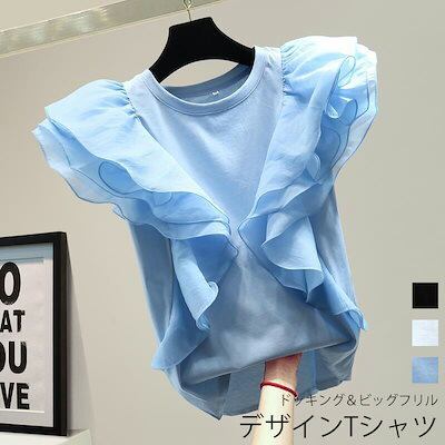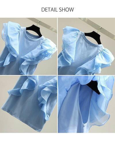 ノースリーブ Tシャツ レディース ドッキング 切り替え おしゃれ トップス tシャツ ブラウス カットソー 切り替えTシャツ フリル 不規則 プルオーバー 夏 トレンド Uネック ラウンドネック 着