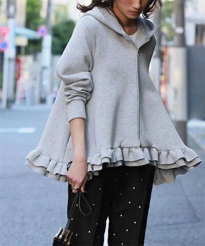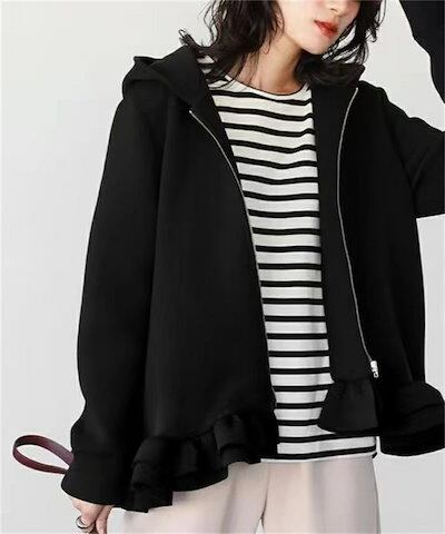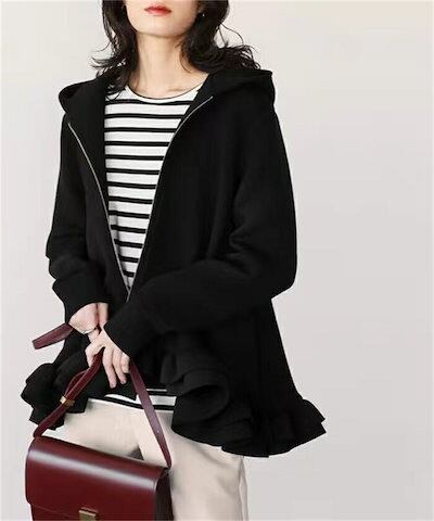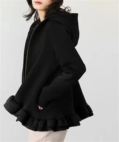 フリルパーカー パーカー レディースフリル パーカー カーディガン トップス アウター 秋冬 秋 冬 長袖 ジップアップパーカー フード付き 体型カバー 無地 羽織り 前開き ゆったり カジュアル シ
