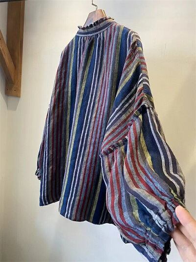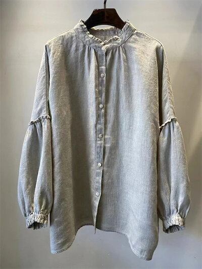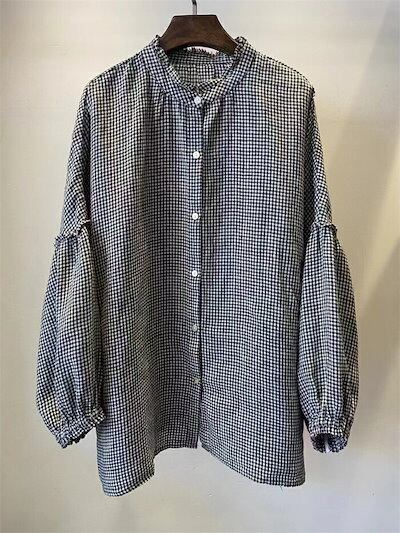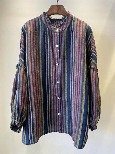 シャツ フリル襟 レディース 春秋 リネン 麻 リネンシャツ 麻100% 長袖 ブラウス シャツブラウス 無地 チェック ストライプ ナチュラル 前開き トップス ゆったり 体型カバー 着?せ 森ガー